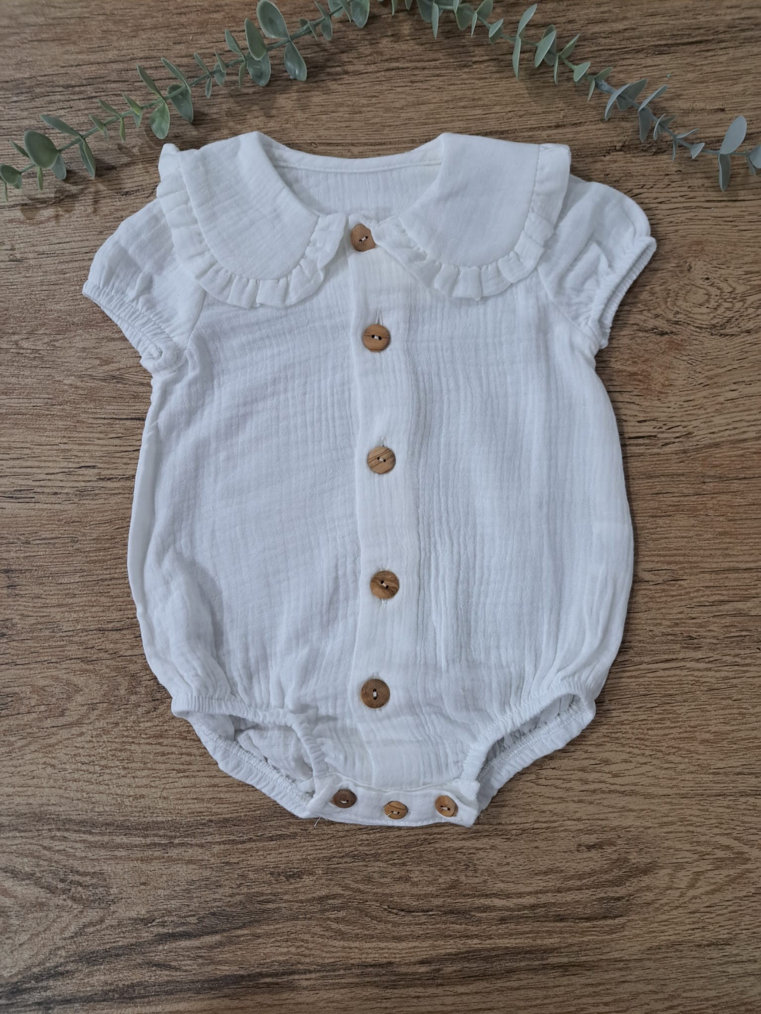 Body bambula con cuello blanco y botones de madera delante