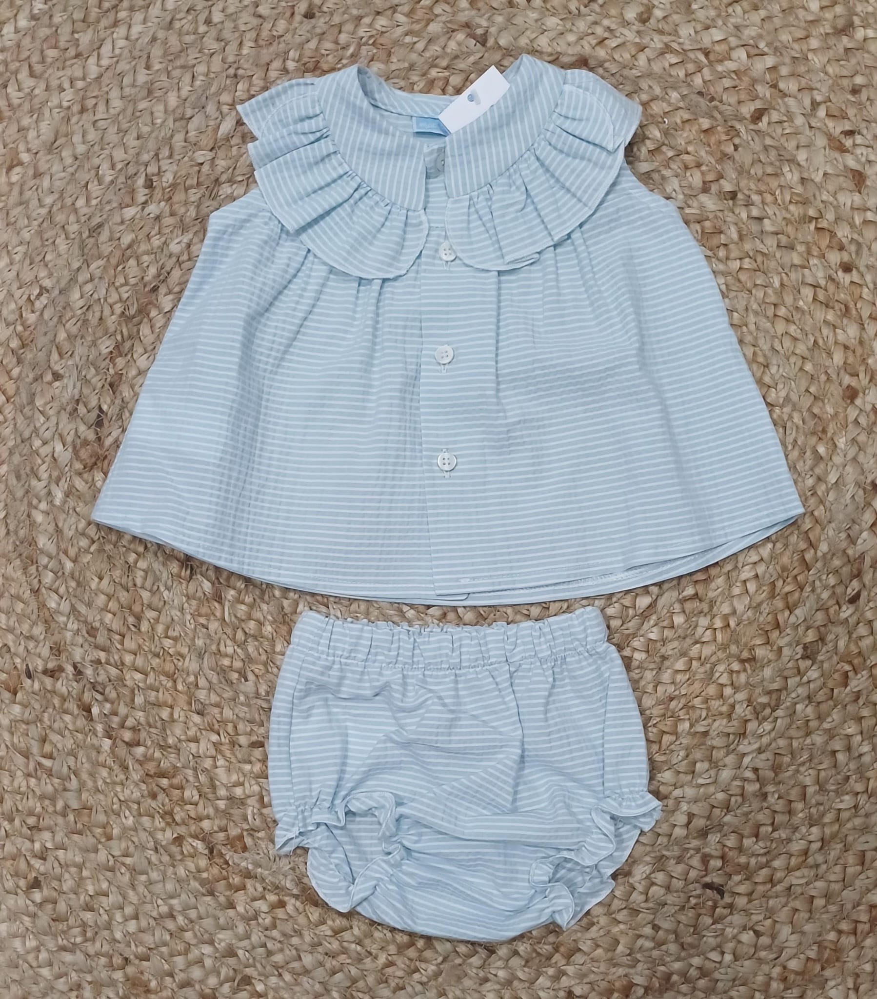 Jesusin y braguita algodon rayas celeste abertura delantera