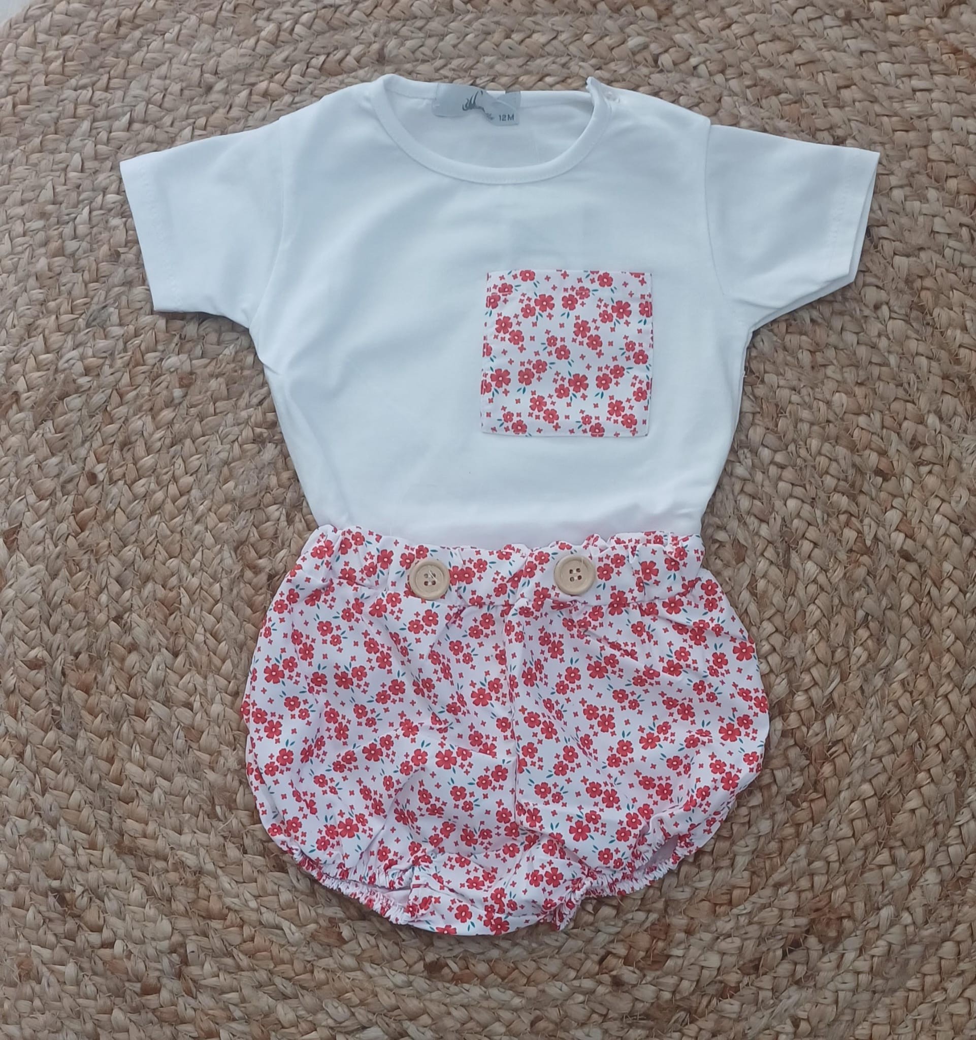 Conjunto niño flores rojas