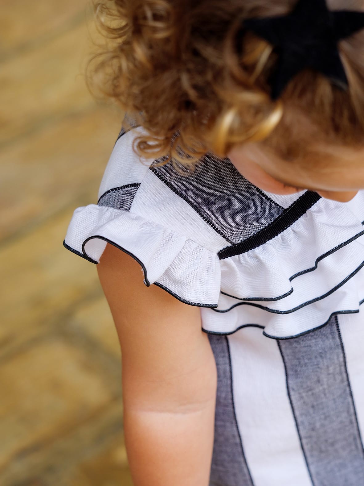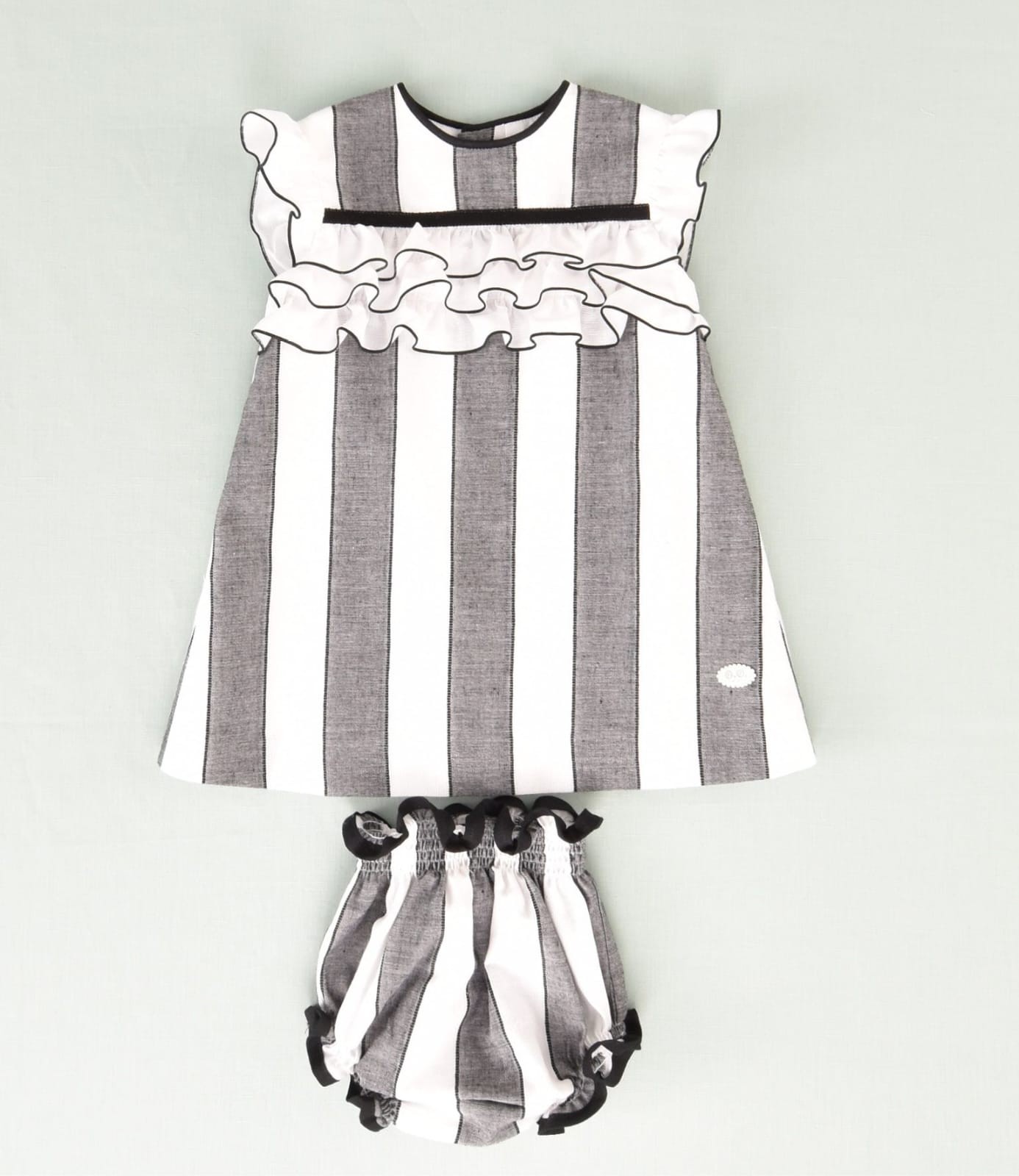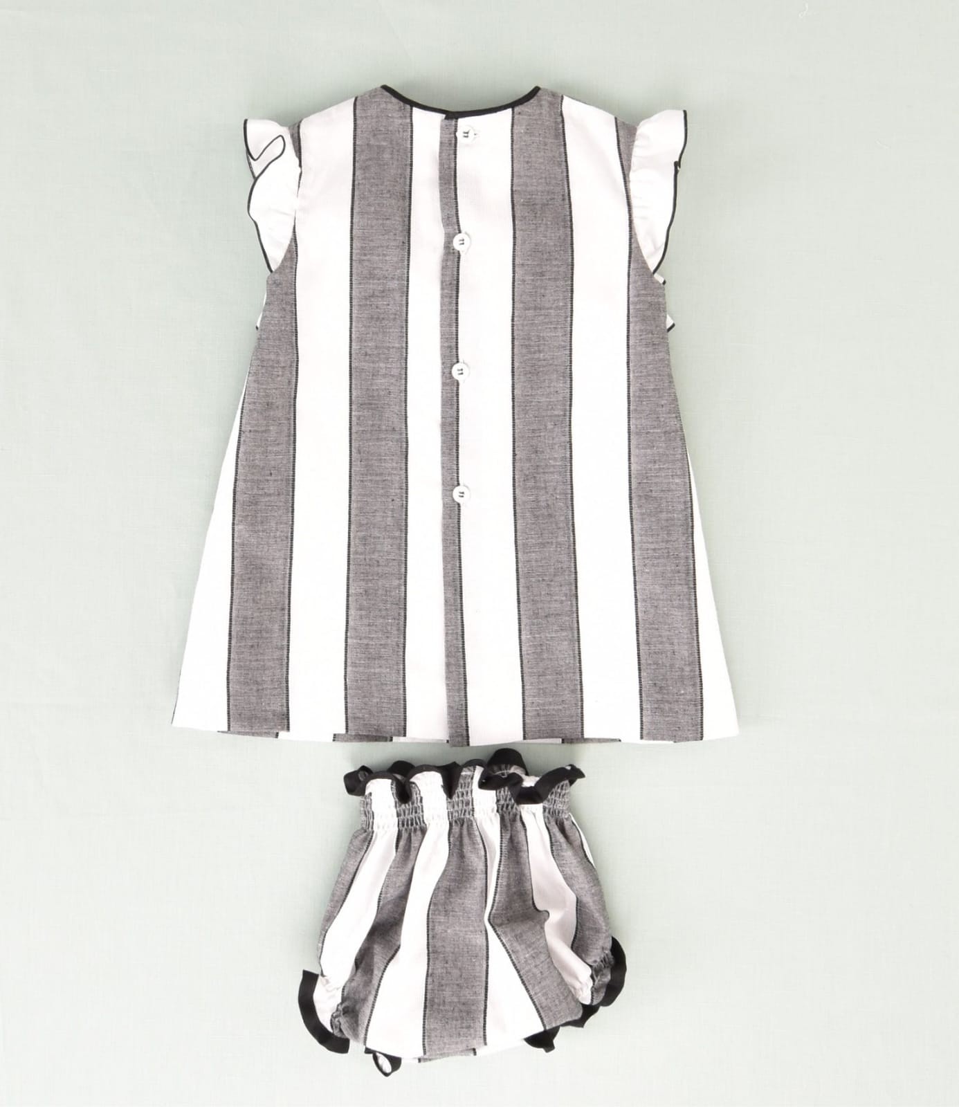 Vestido rayas negras y blancas bebe con detalle volante 2p