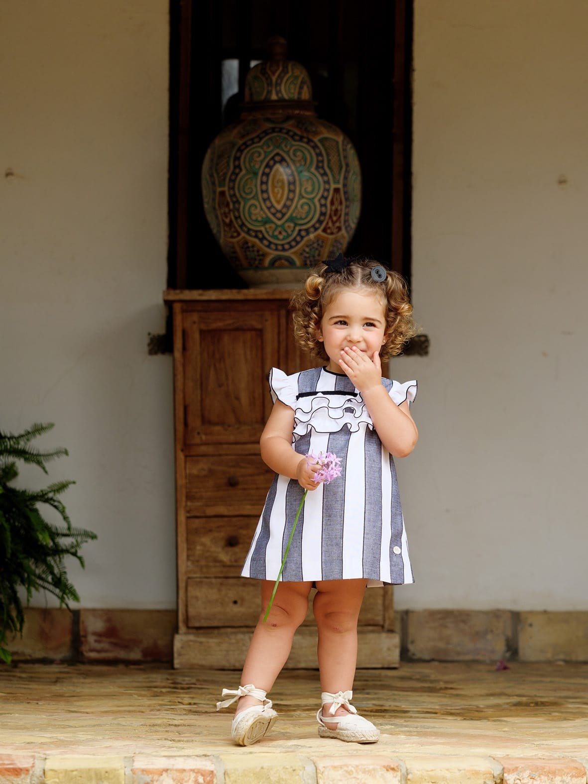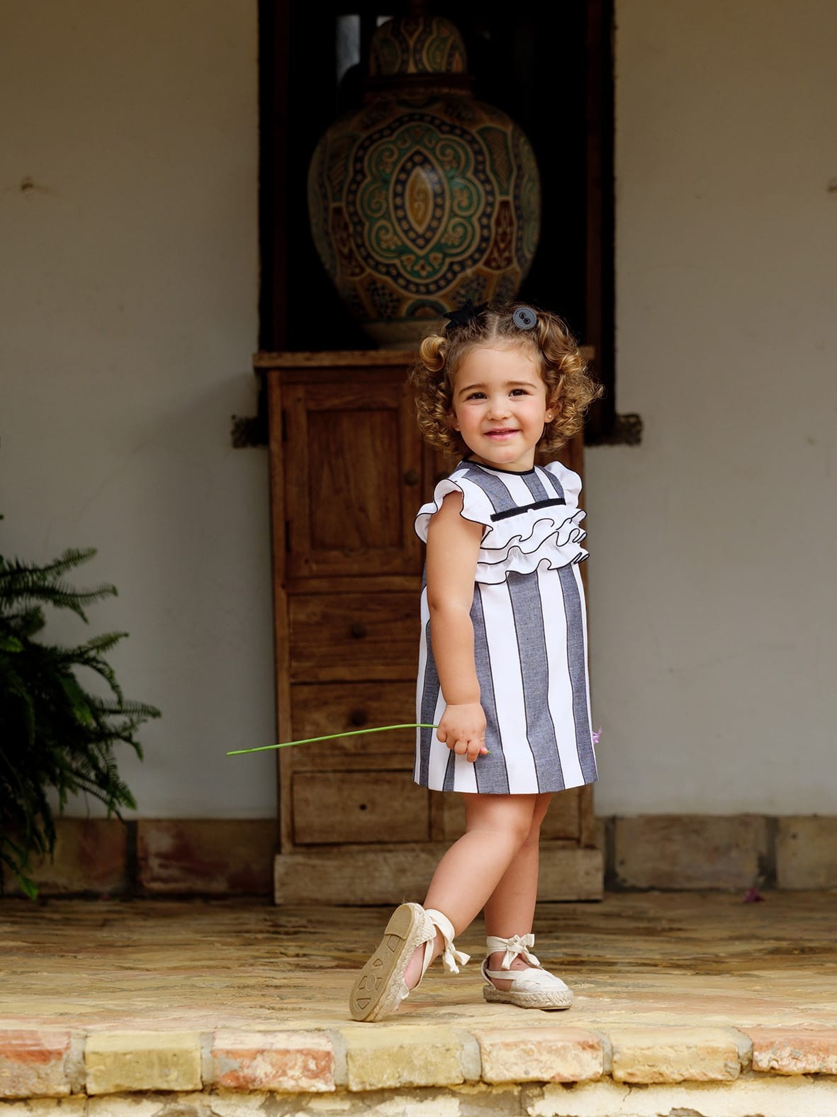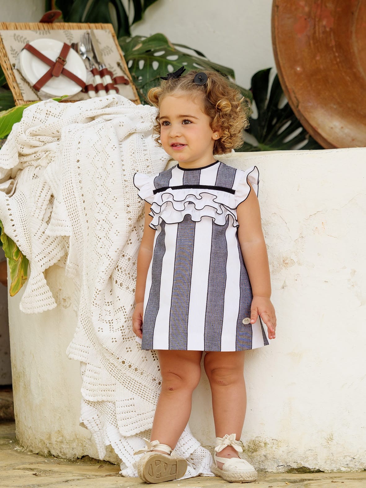 Vestido rayas negras y blancas bebe con detalle volante 2p