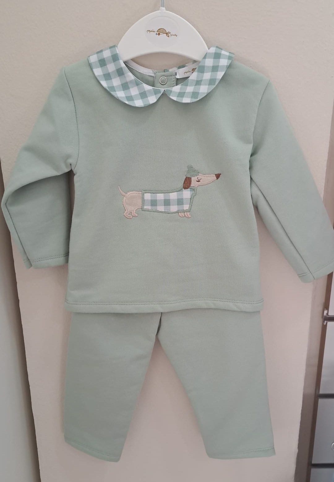 Chándal perro verde seco con cuello vichy