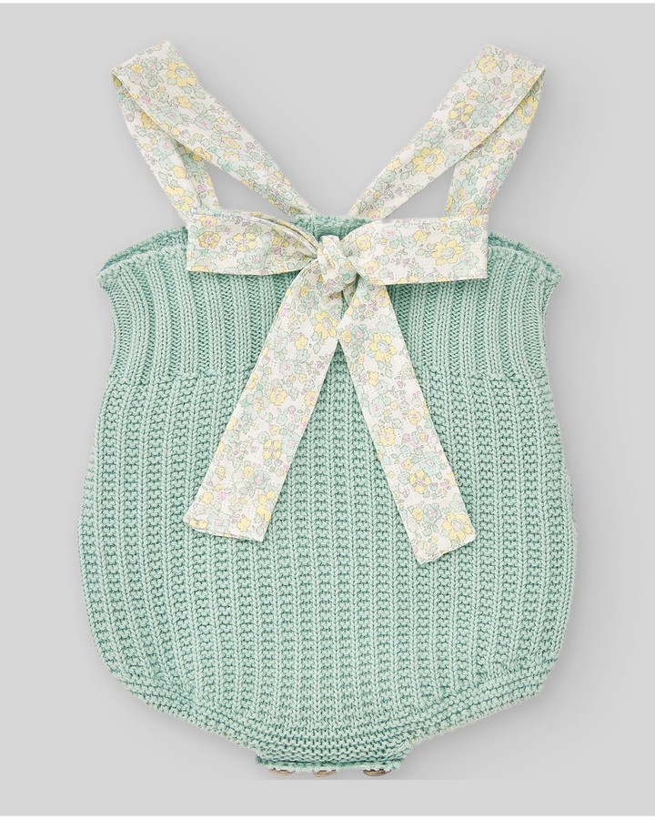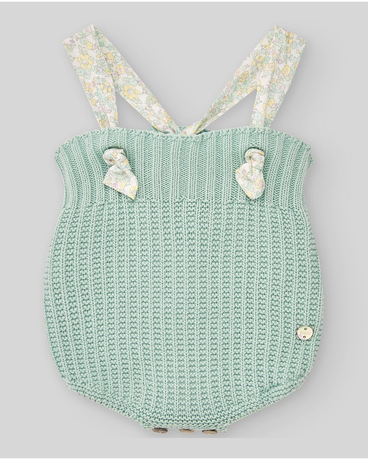 Ranita punto verde agua con tirante floreados lazo en la espalda 100% algodón
