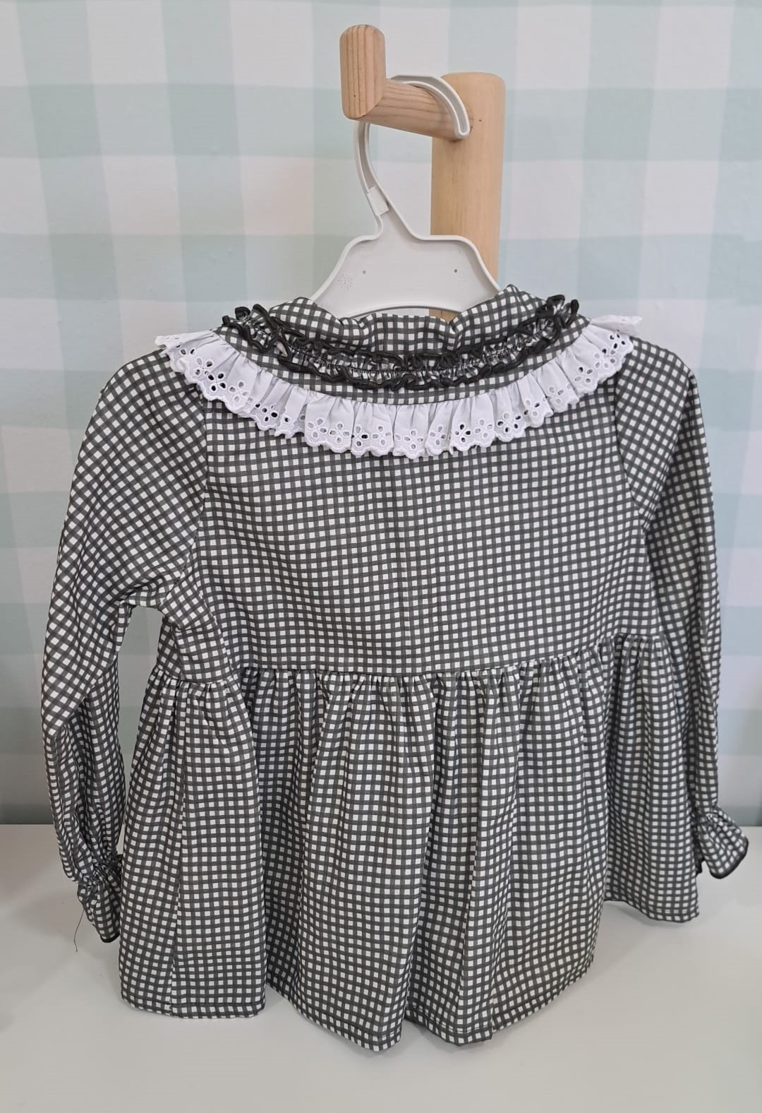 Blusa vichy verde con cuello mara