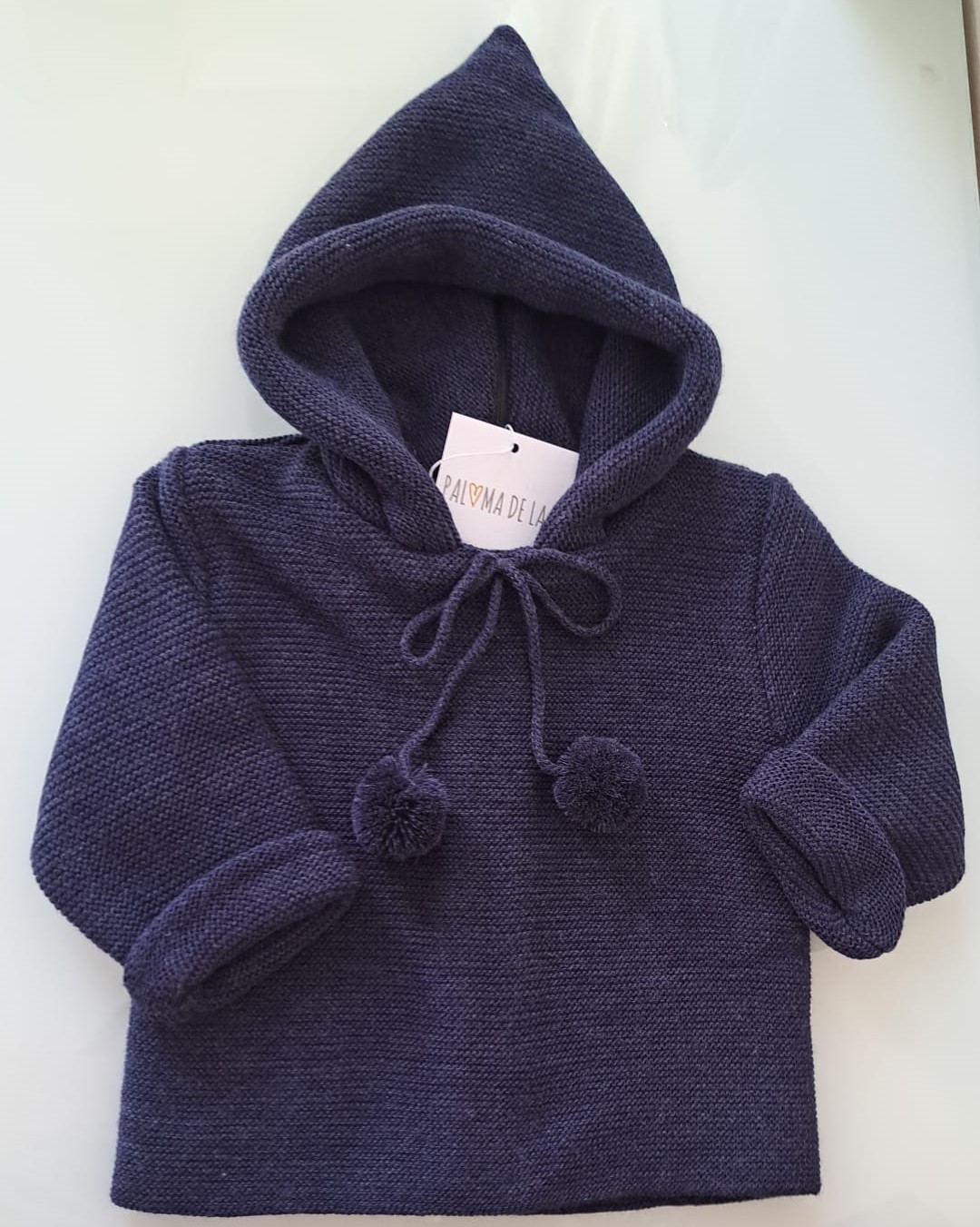 Abrigo pompones cremallera detrás azul