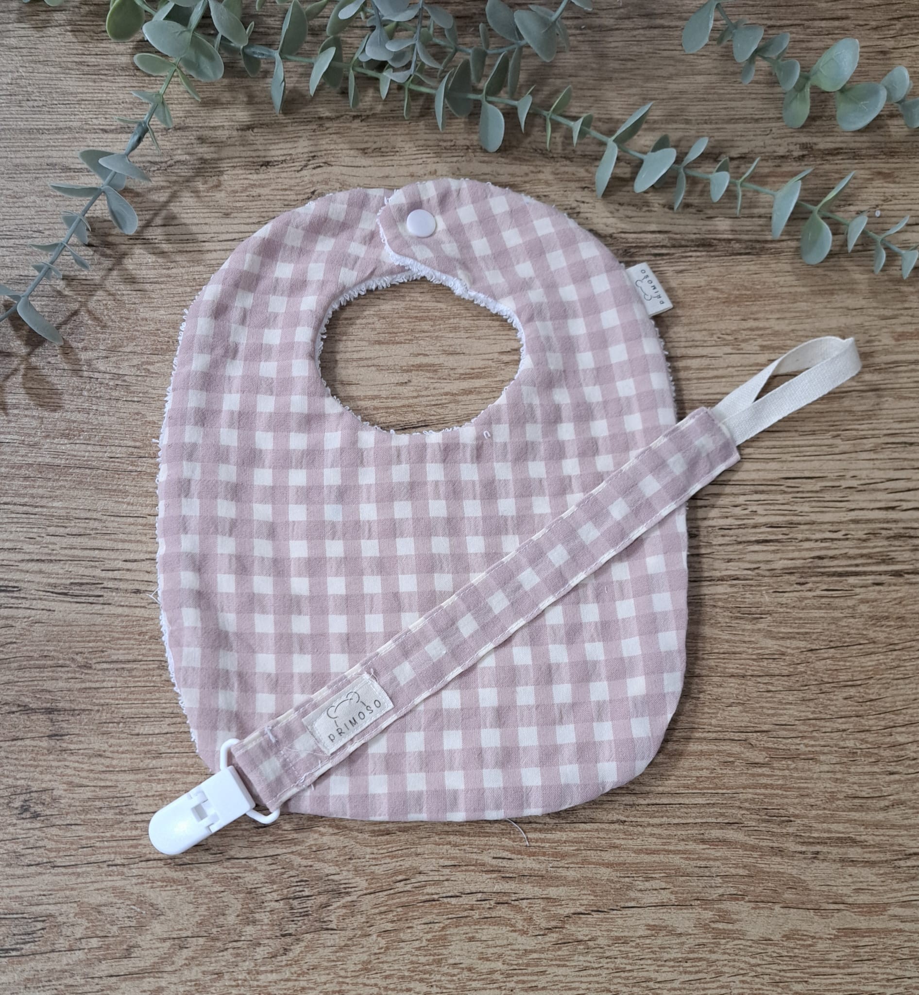 Pack Babero y Chupetero vichy rosa